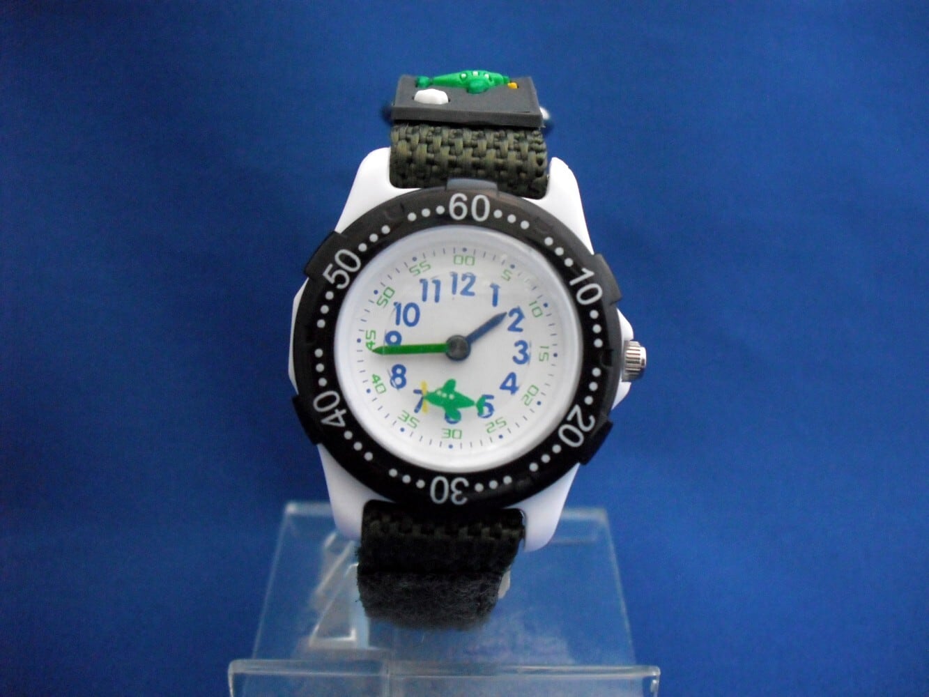 イラスト入りのディスク秒針が回るキッズウオッチ